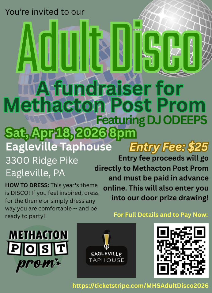 On Saturday night, April 18th, 2026 we'll be holding an Adult Fundraiser at Eagleville Taphouse. This will be a night of fun for adults to raise money that goes to Post Prom to help fund the event for our Juniors and Seniors.